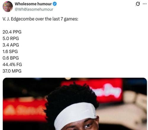 过去7场比赛,埃奇库姆场均可以拿到20.4分5板3.4助1.6断0.6帽全能数据,展现出一名超级新星应有的风采与潜质。