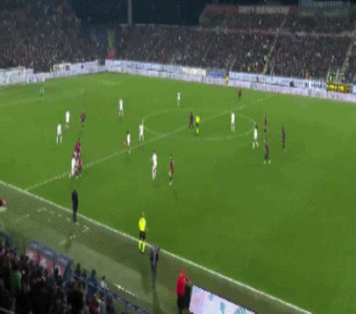 第3分钟,卡利亚里禁区外远射一脚,球打高了