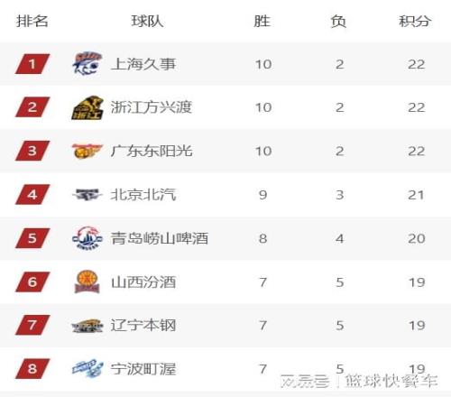 排在积分榜第6名的是山西队,他们目前的战绩是7胜5负。而四冠王辽宁队,在经历前阵子的四连败低谷后,球队最近状态不错,接连赢球后,他们已经收获一波三连胜。这一轮比赛击败江苏队以后,他们的战绩也变成7胜5负,又一次回到正轨。目前,辽宁队已经重返积分榜前八,暂居第七名。而排在积分榜第8名的是宁波队,他们目前的战绩是7胜5负。