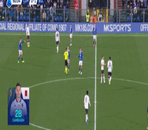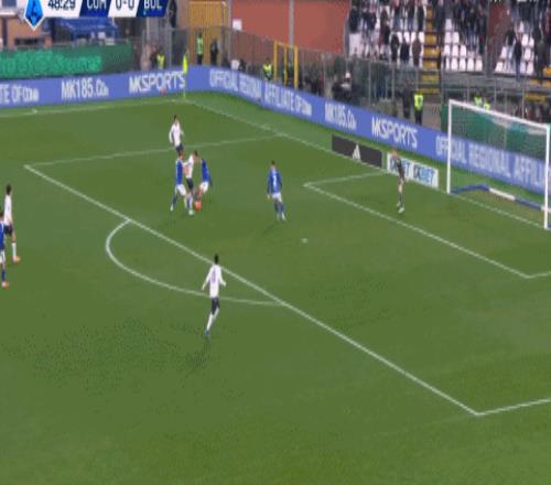 第49分钟,打破僵局,卡斯特罗助攻坎比亚吉破门,博洛尼亚1-0